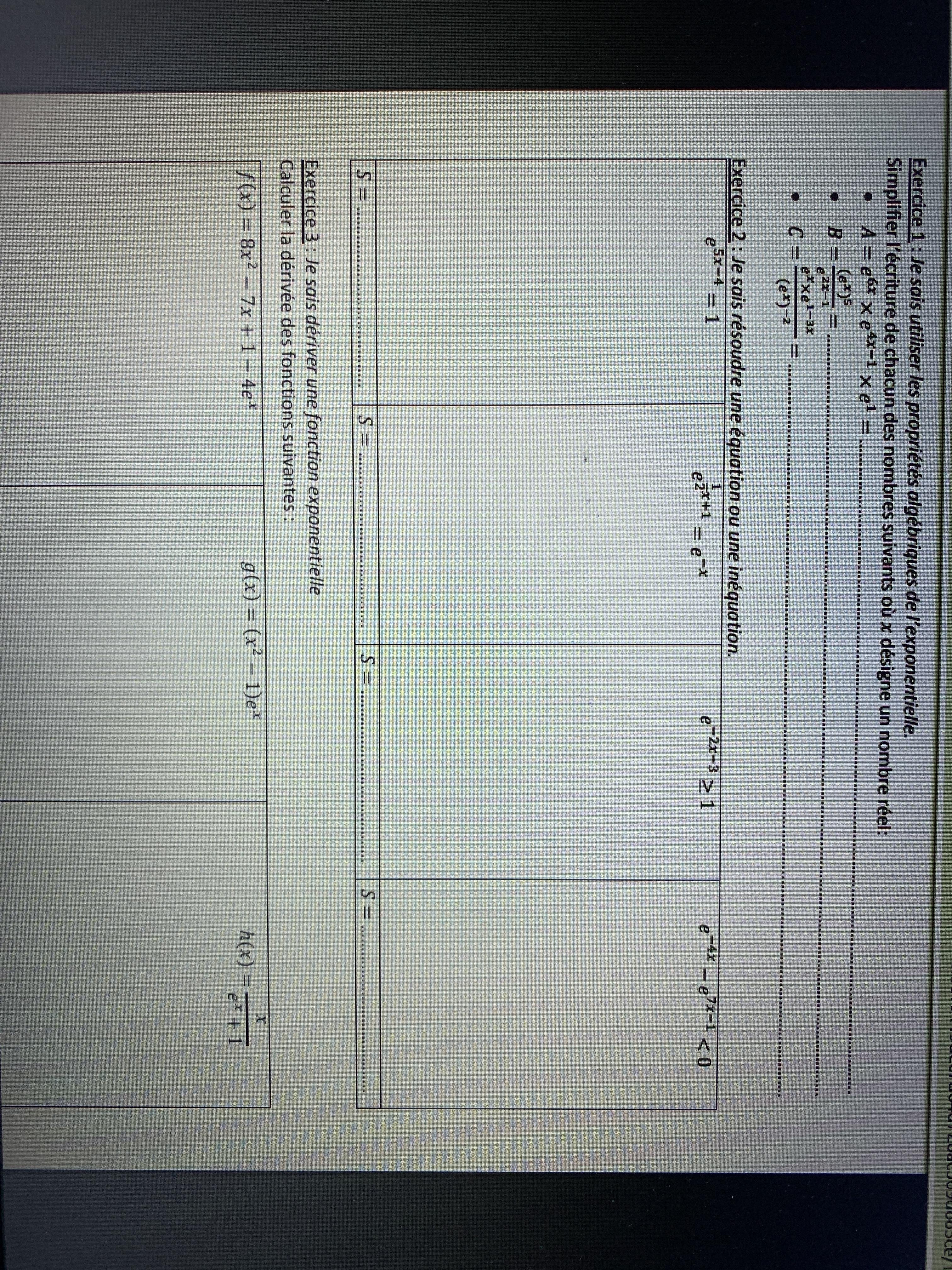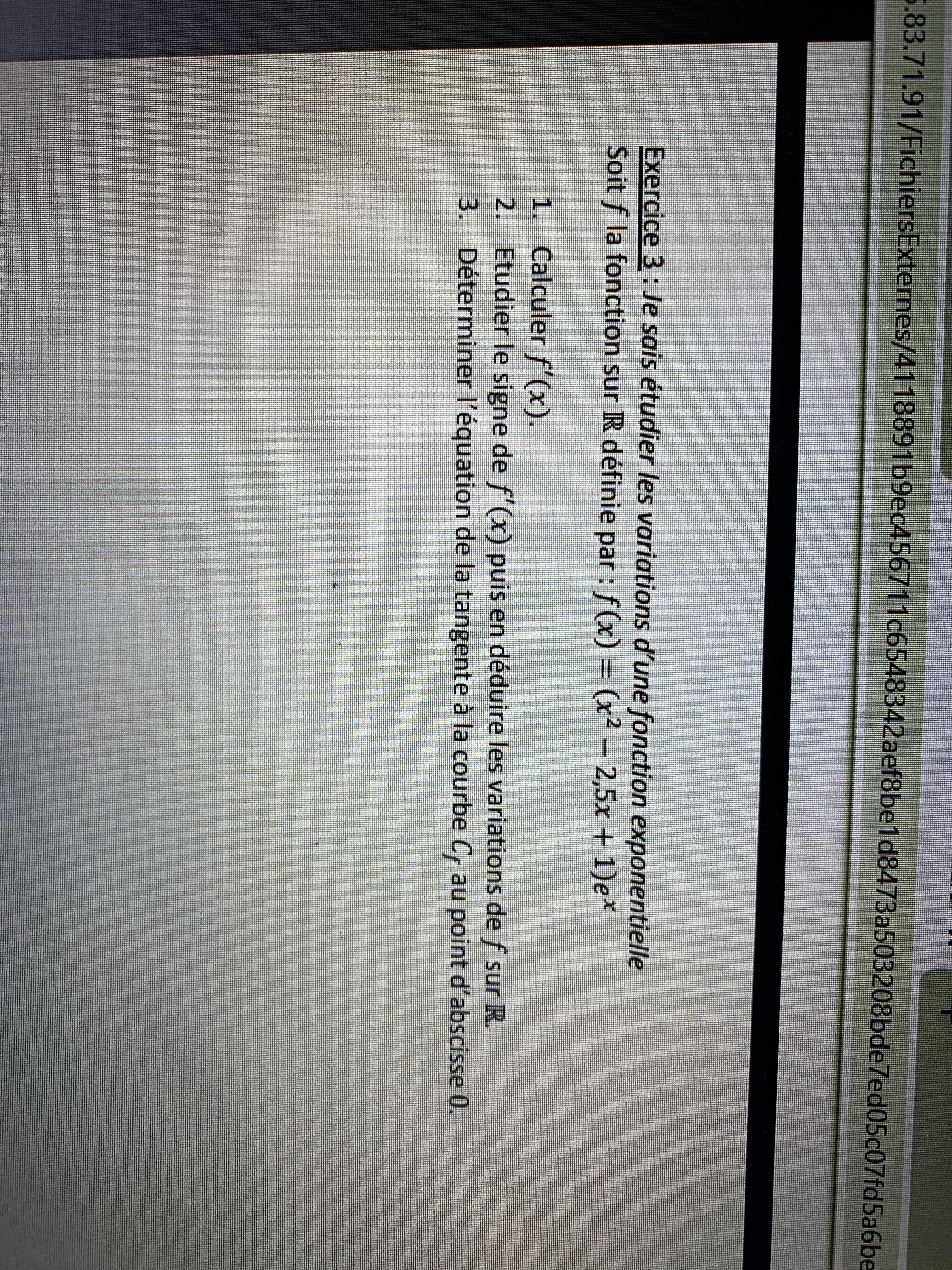 Nxmrtnzzzz Posté(e) le 6 avril 2020 Auteur Signaler Posté(e) le 6 avril 2020 il y a 17 minutes, anylor a dit : e^(-2x-3) >ou égal 1 oui mais il faut finir ....x< ou égal -3/2 pour h la dérivée h'(x)= ( ex - xex + 1 ) / (ex+1)² Donc ici exercice 1 et 2 ok?