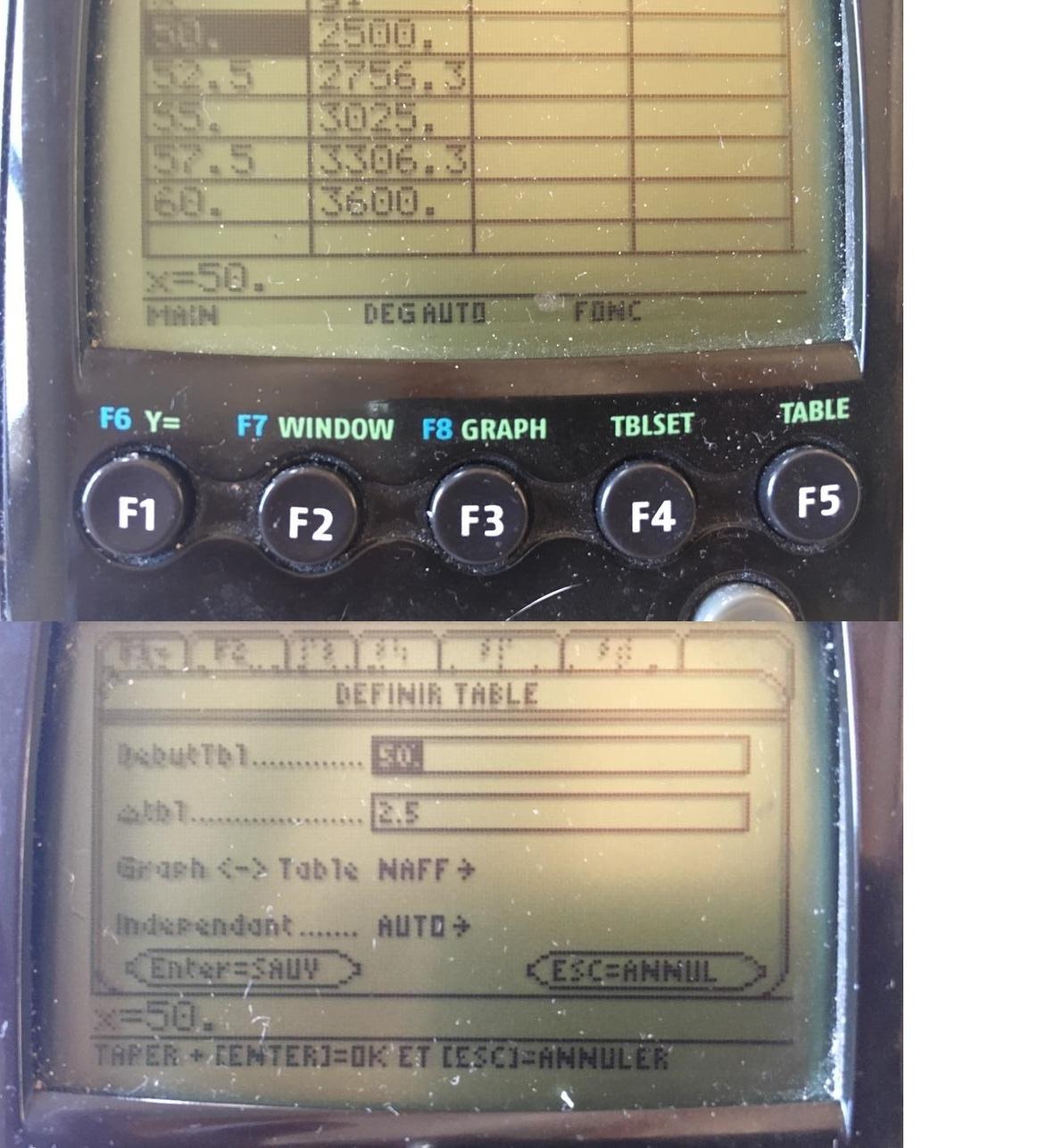 anylor Posté(e) le 9 avril 2020 Signaler Posté(e) le 9 avril 2020 ok tu vas dans l'éditeur de fonction de ta calculatrice et tu rentres x² comme lorsque tu rentres une fonction. et ensuite tu lis les valeurs dans la table. Quelle est ta calculatrice ? (tu pourrais faire ça sur tableur )