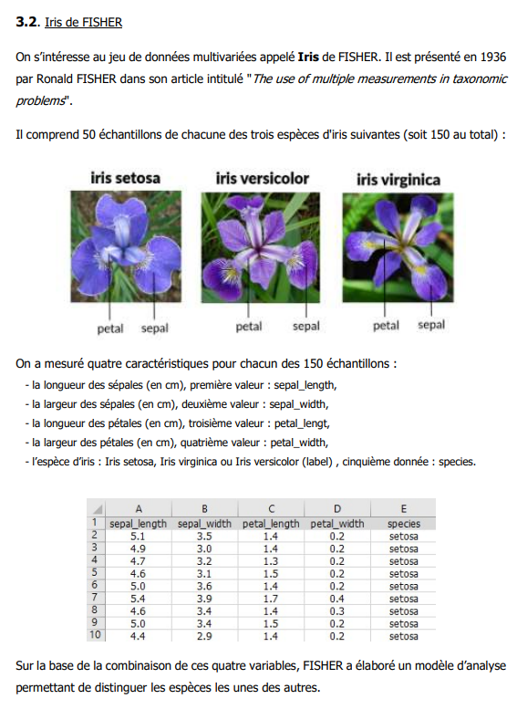 E-Bahut julesx Posté(e) le 4 juin 2020 E-Bahut Signaler Posté(e) le 4 juin 2020 Bonsoir, Là, pour ce soir, ce sera bref, à cette heure, je ne suis plus capable de réflexion intense, cf. mon grand age !!! Je vois juste un problème : Dans ce qui précède, le fichier iris 'iris_donnees_petal.csv' ne contient pas les "species". Donc, si on veut travailler avec cette dernière donnée, il faut recréer le fichier CSV correspondant. Donc reprendre toute une partie de ce qui précède ? Je te laisse réfléchir à ce problème...
