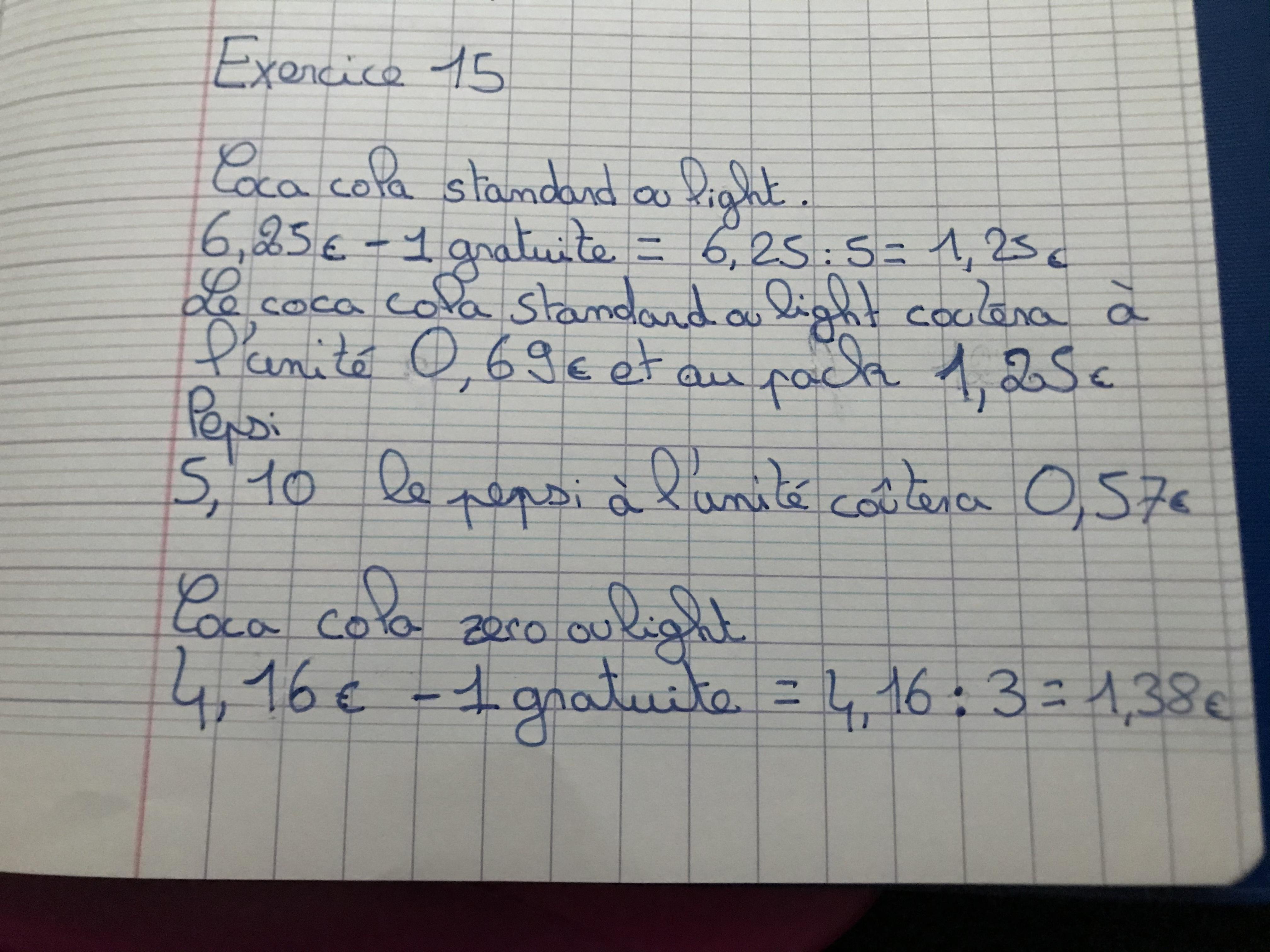anylor Posté(e) le 15 novembre 2020 Signaler Posté(e) le 15 novembre 2020 bonjour attention à la rédaction : tu ne peux pas soustraire une bouteille à un prix.. si tu regardes toutes les étiquettes, en dernière ligne tu as le prix au litre ce qui te permet de comparer directement les prix , puisqu'il sont tous ramenés à la même unité . Effectivement le soda le moins cher est le Pepsi Cola regular !
