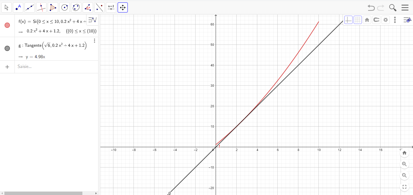 C(x) =0,2x²+4x+1,2  ==> C'(x) = 0,2*2x +4 soit C '(x) = 0.4x+4 donc C'(V6) = 0,4V6+4