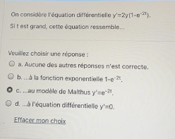 CeliaSch Posté(e) le 21 février 2021 Signaler Posté(e) le 21 février 2021 Bonsoir, J'ai des exercices d'entrainements à faire mais je ne suis pas sûre de mes réponses , je ne maitrise pas encore le cours sur les modèles est-ce que vous pouvez m'expliquer le concept et les différences pour malthus (latence...)et logistique (Allee)? Merci beaucoup
