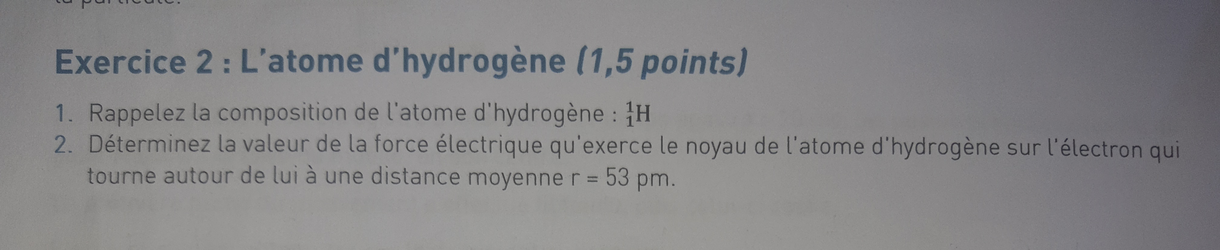 Lou25 Posté(e) le 14 avril 2021 Auteur Signaler Posté(e) le 14 avril 2021 1) L'atome d'hydrogène est composé d'un noyau comportant un proton et un électron. 2) Citer