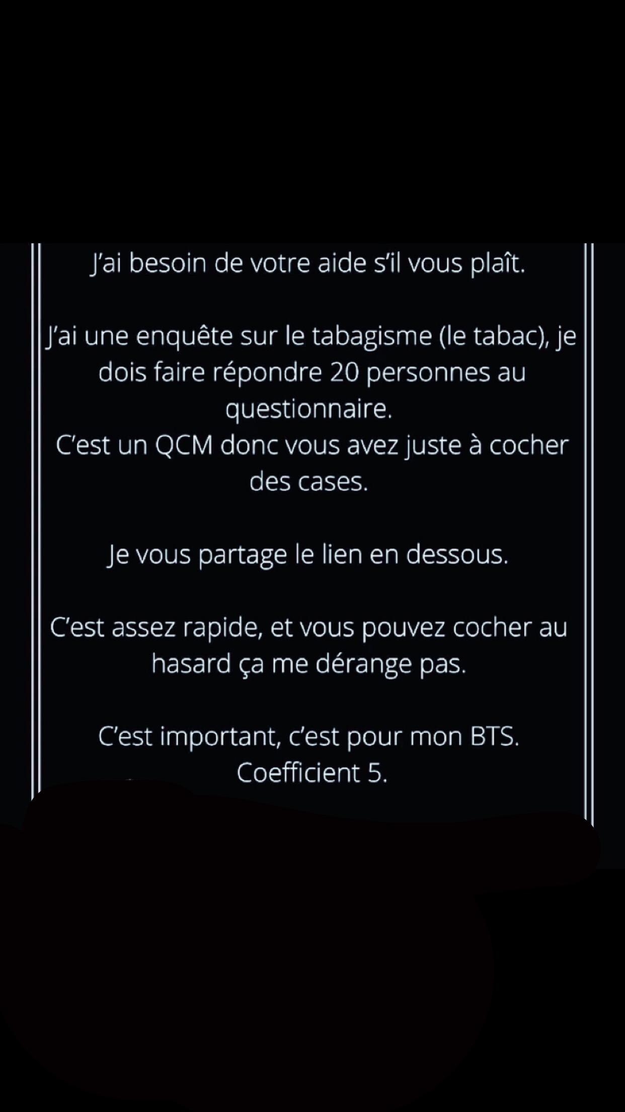AnneSoooo Posté(e) le 23 octobre 2021 Signaler Posté(e) le 23 octobre 2021 https://sphinxdeclic.com/d/s/voyc07 merci d’y répondre, appuyer sur le lien pour y accéder, il y a 29 questions au total bonne journée Citer