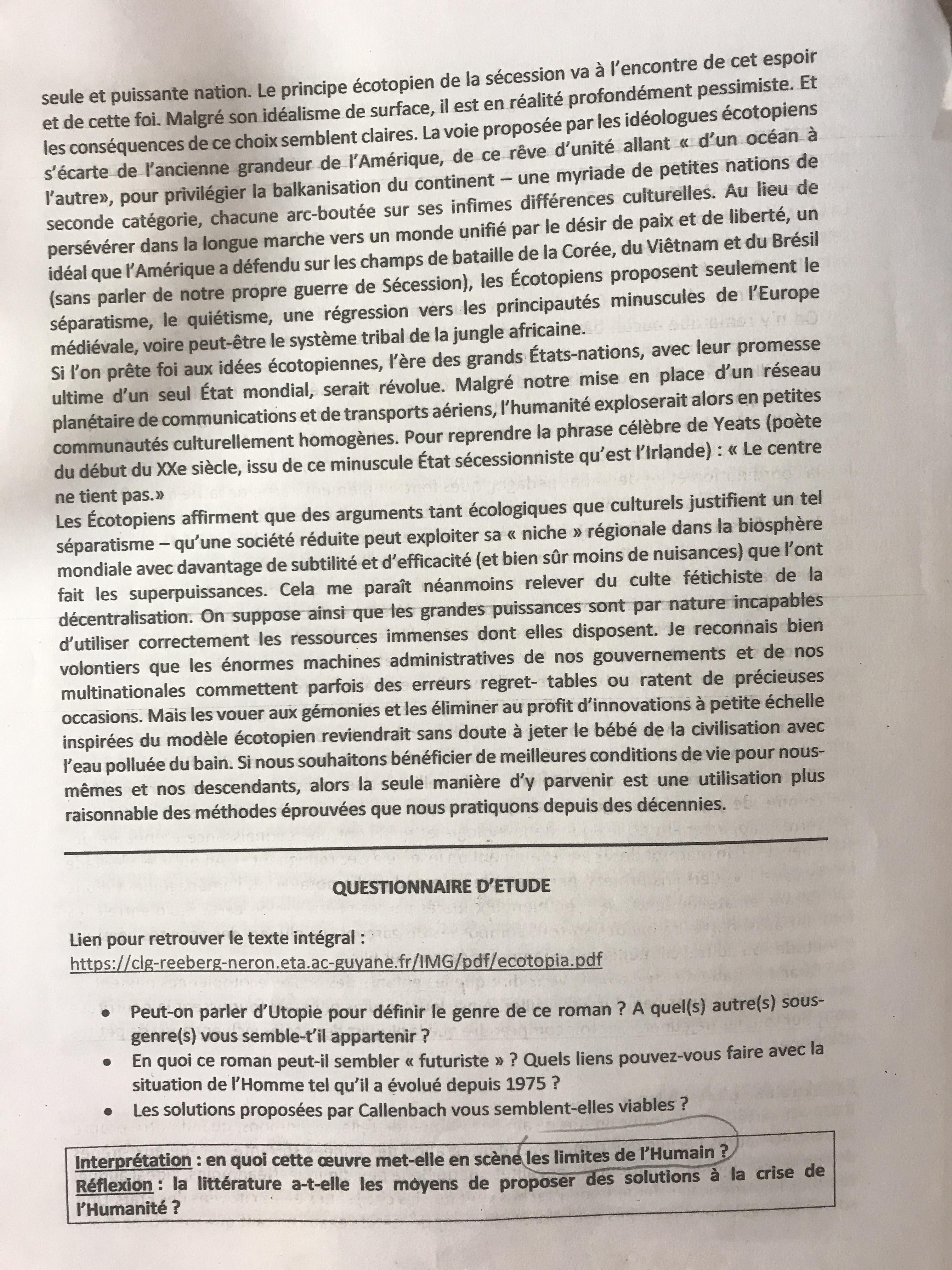 Lulu222003 Posté(e) le 25 mai 2022 Signaler Posté(e) le 25 mai 2022 Salut j’ai un dm à faire en littérature sur le roman d’Ernest Callenbach : Ecotopia Si vous pouvez m’aider ce serait super !! Citer