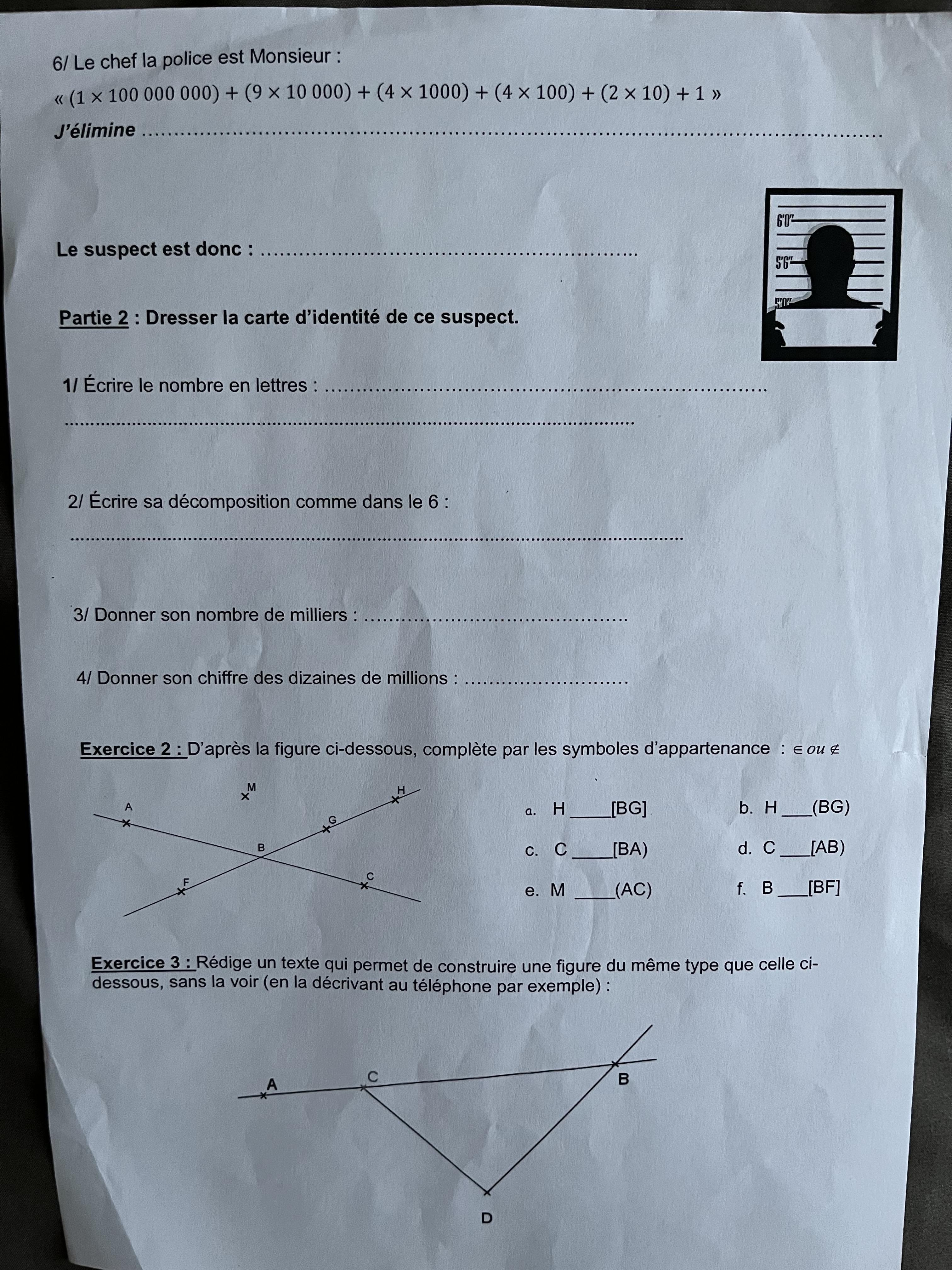 E-Bahut julesx Posté(e) le 21 septembre 2024 E-Bahut Signaler Posté(e) le 21 septembre 2024 Bonsoir et bienvenue sur le site Mais même si tu es bienvenue, tu n'auras pas un corrigé in extenso d'un exercice posté sans aucune demande d'explication (ni d'ailleurs sans la moindre formule de politesse). Donc, qu'est ce qui t'arrête : Pour l'exercice 1), tu n'as pas compris la notion d'écriture des nombres en lettres ? Et pour l'exercice 2), les notations des segments et des droites ? Citer
