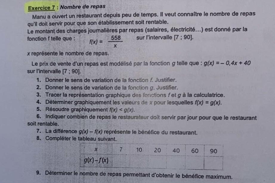 Anoynme75091 Posté(e) il y a 22 heures Signaler Posté(e) il y a 22 heures Bonjour à tous, j’ai du mal avec cette exercice, Si quelqu’un pourrait m’aider je serai ravi. (Ps:je n’ai pas la calculatrice donc je ne pourrai pas tracer les graphique demandés.) Citer